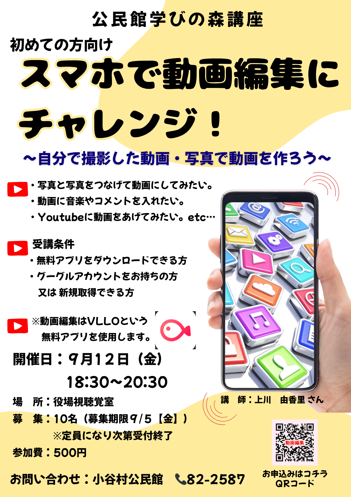 公民館 学びの森講座 『スマホで動画編集にチャレンジ!』(注意)終了