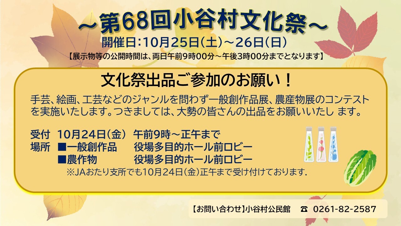 【お問い合わせ】 小谷村公民館 ☎82-2587