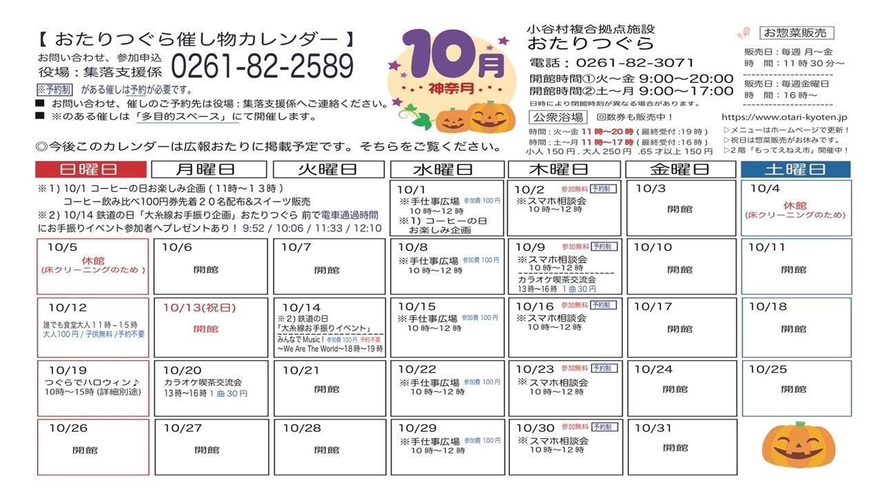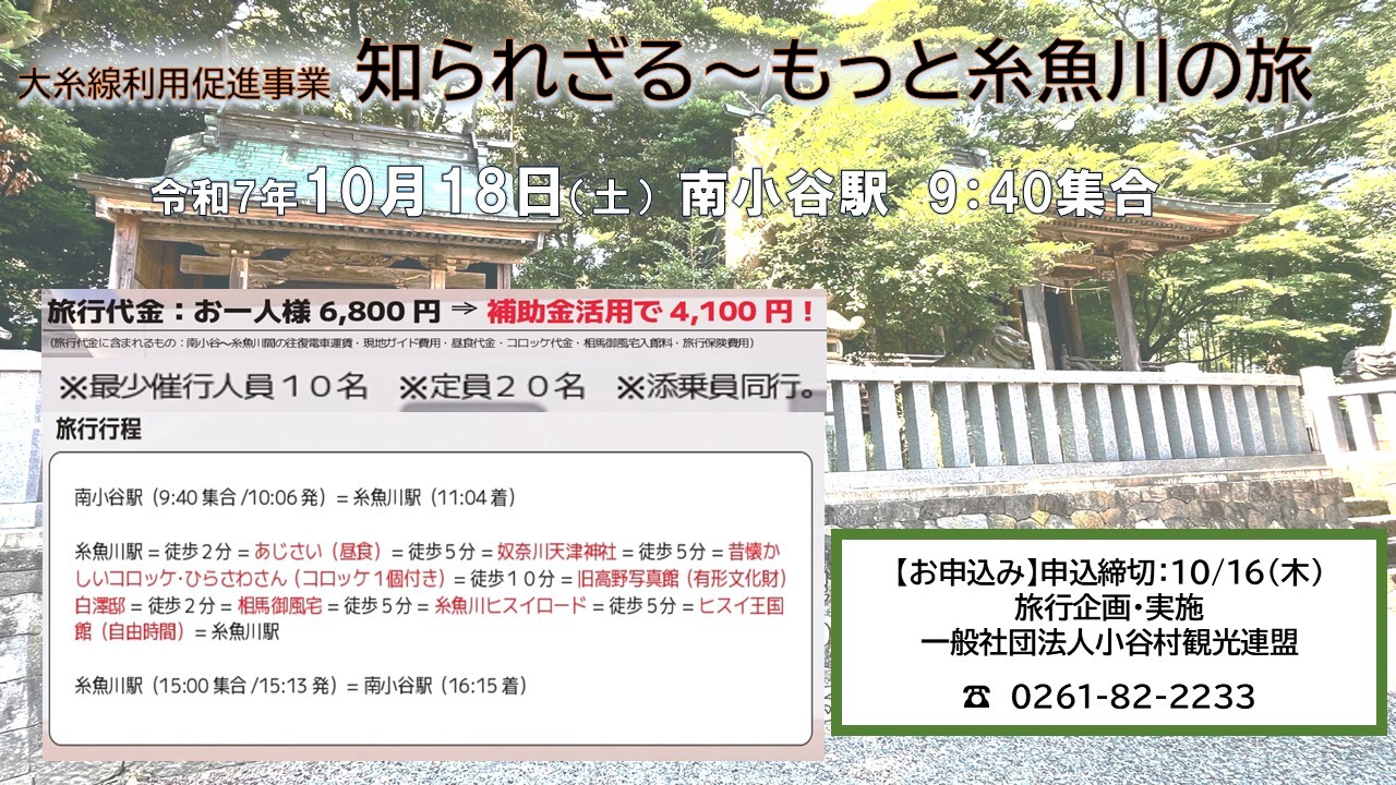 【お申込み】申込み締切:10/16(木) 旅行企画・実施 一般社団法人小谷村観光連盟 ☎0261-82-2233