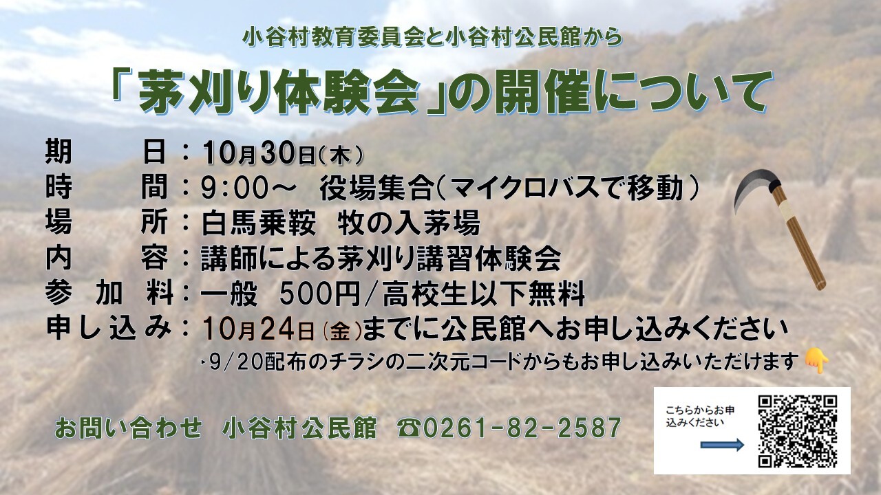 小谷村教育委員会と小谷村公民館から 『茅刈り体験会』の開催について