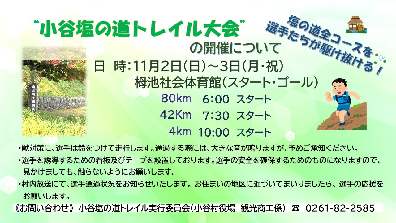 【お問い合わせ】 小谷村塩の道トレイル実行委員会(小谷村役場 観光商工係) ☎0261-82-2585