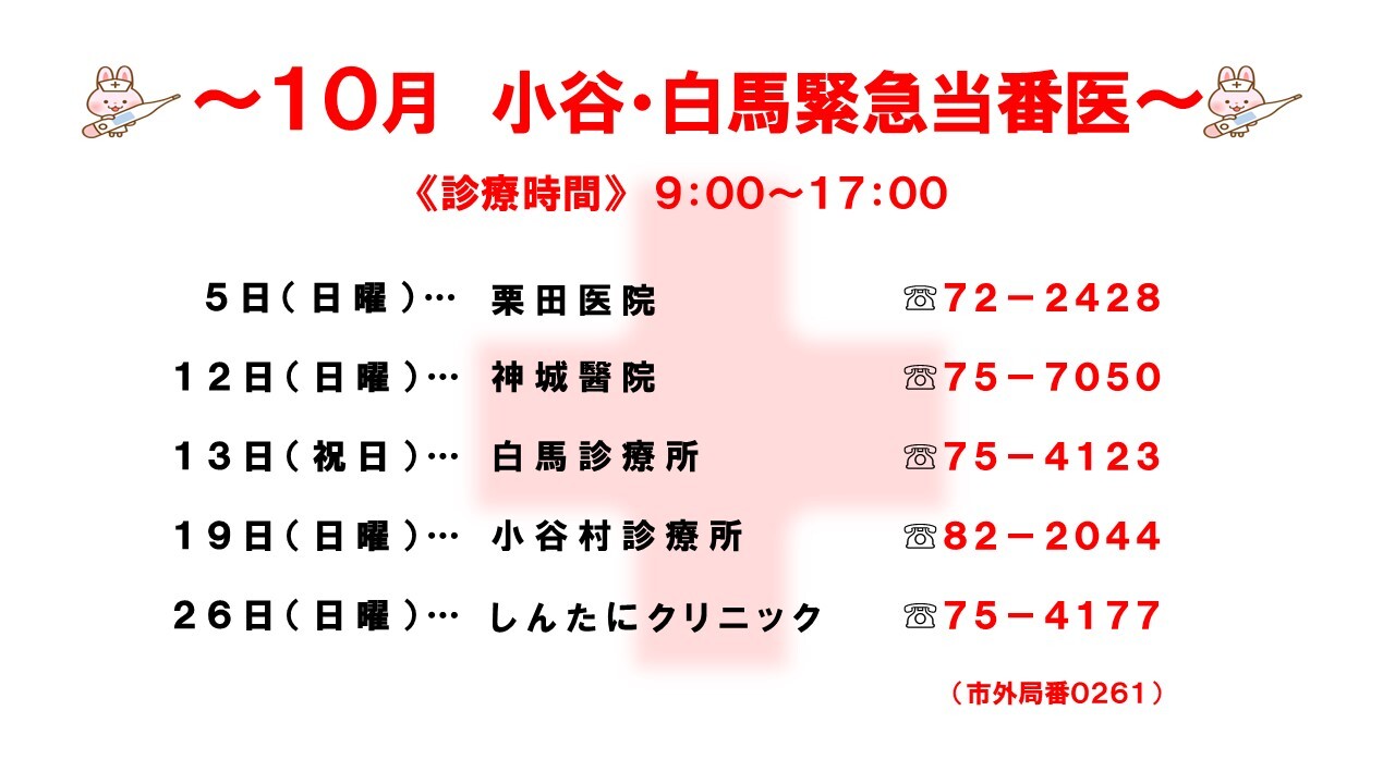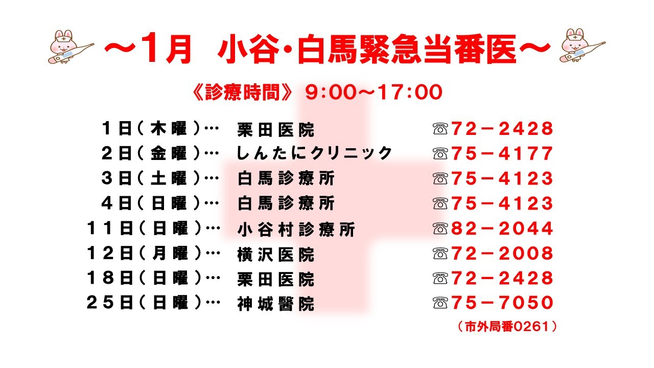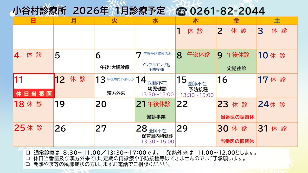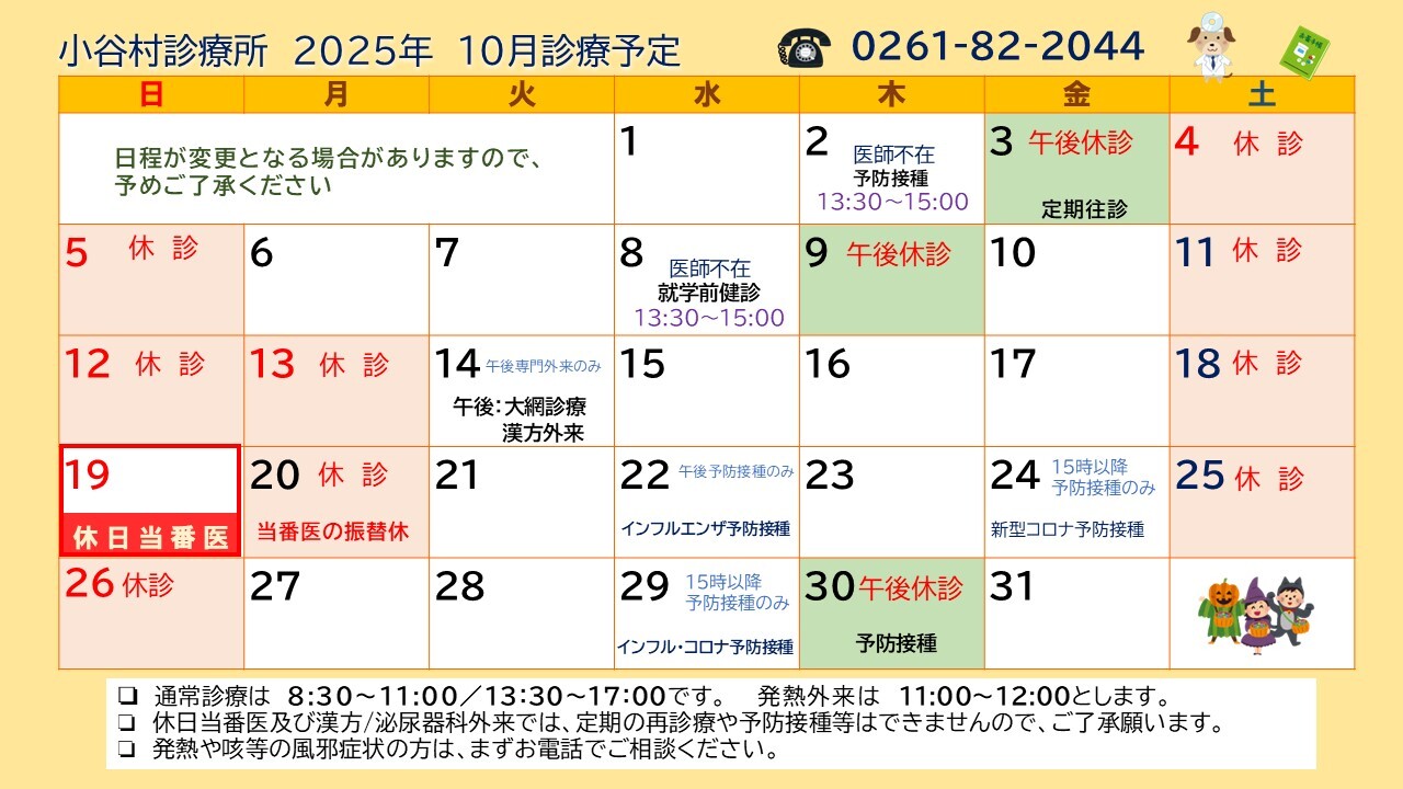 ■休日当番医及び漢方/泌尿器科外来では、定期の再診療や予防接種等はできませんので、ご了承願います。