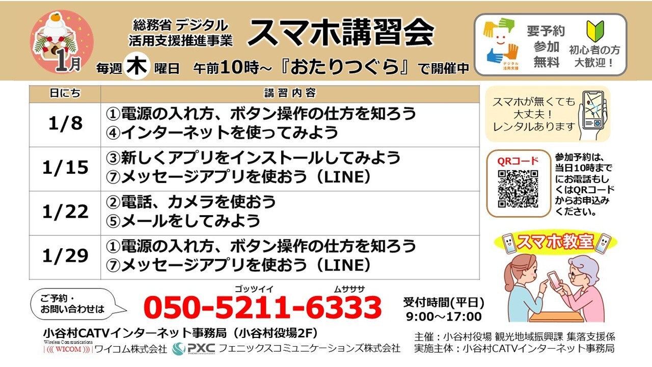 【ご予約・お問い合わせ】 小谷村CATVインターネット事務局(小谷村役場2F) ☎050-5211-6333