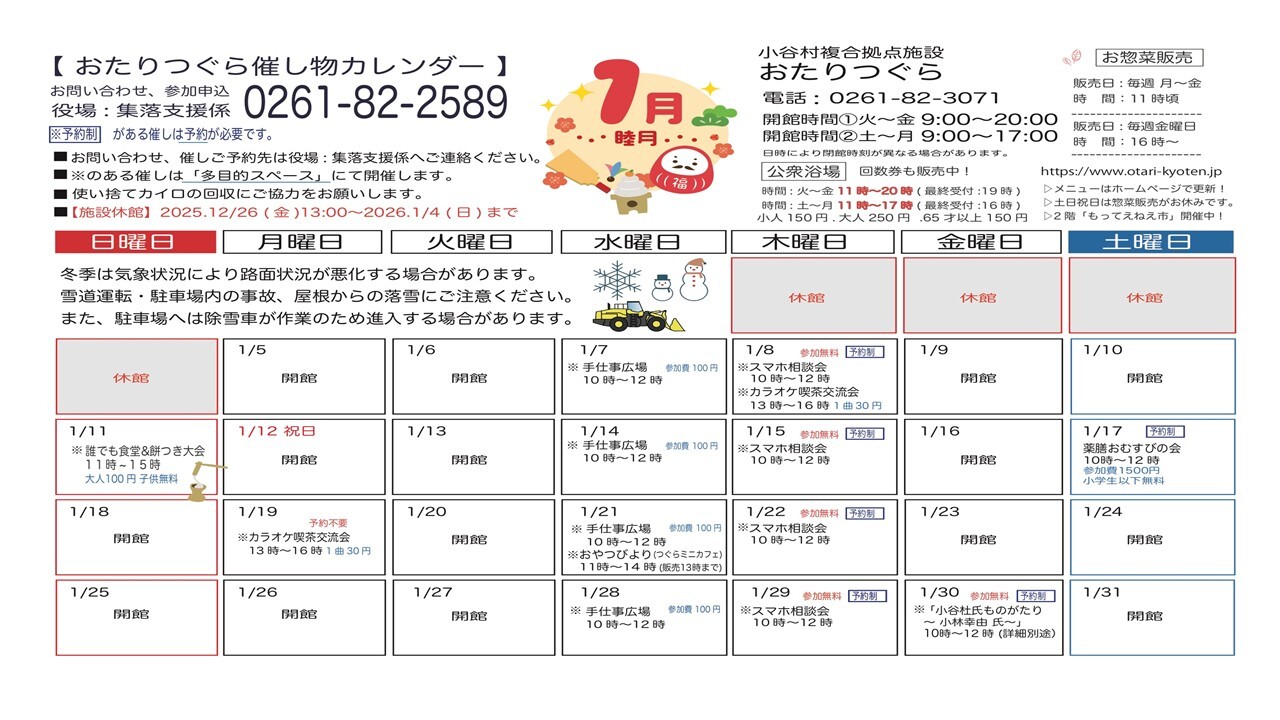 【お問合せ】小谷村図書館 ☎0261-82-2587