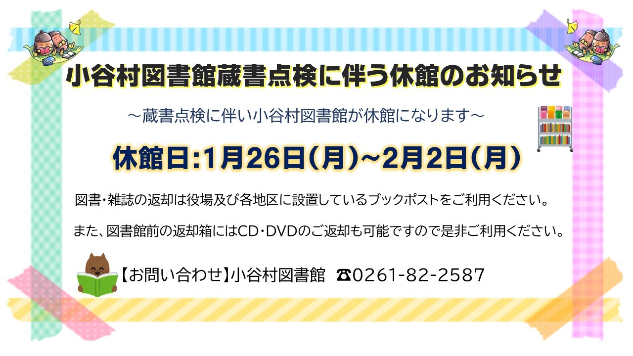 ~蔵書点検に伴い小谷村図書館が休館になります~
