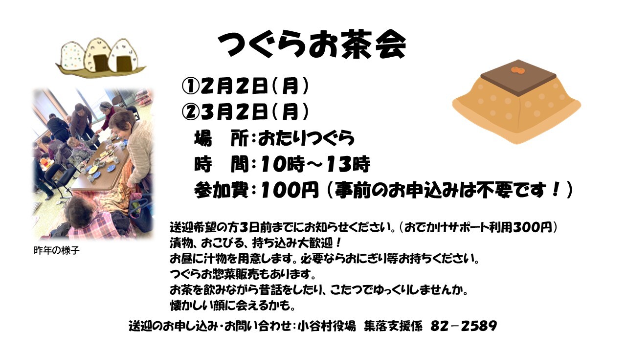 お茶を飲みながら昔話をしたり、こたつでゆっくりしませんか。