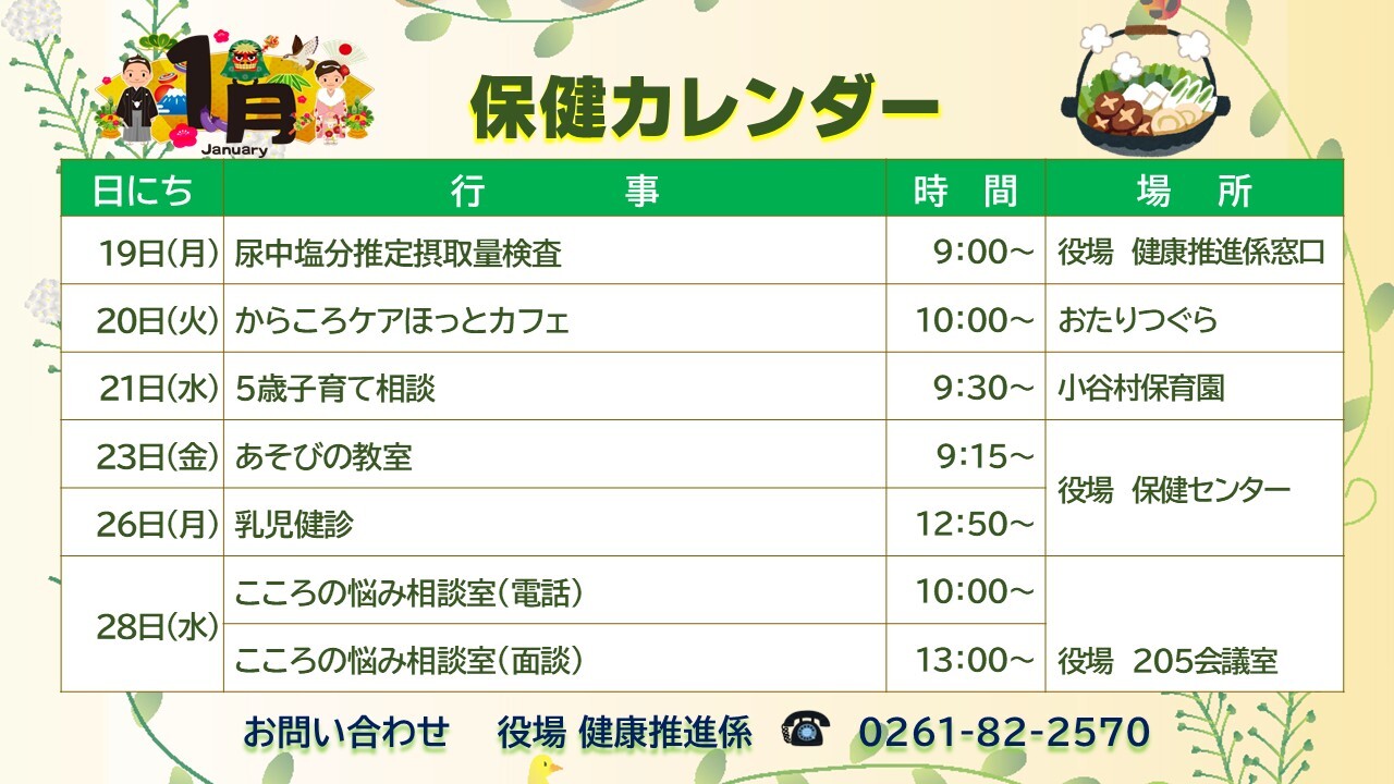 【お問い合わせ】 小谷村役場 健康推進係 ☎0261-82-2570